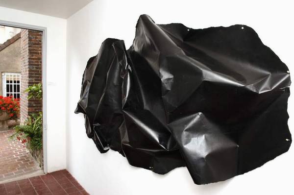 Le pavillon sur la terrasse, 2007, simli black, cirage sur papier