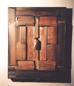 ![]() Icône - 1990 - livres massicotés - 50 x 40 cm Débris de Mémoires, promis au pilon, échappés de bibliothèques, arrachés au feu, sauvés de l'oubli, les livres détoumés de leur existence propre deviennent bornes, jalons, repères dans le grand Labyrinthe de l'Univers cher à BORGES. "Dé-livrés", Vestiges du Futur, ils pérégrinent dans le Désert de la Parole en compagnie de JABES. Palimpsestes d'aujourd'hui, griffures d'hiéroglyphes, traces hébraïques, instants de surprise mêlés d'admiration et d'effroi, fidèles reflets de toutes les conditions humaines, ces livres suppliciés fouillent de leurs regards singuliers notre propre histoire. A participé aux expositions : |