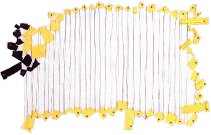 Exposition en place du 04/11/00 au 10/01/01 Avec la participation de : Côté Atelier Cantoisel, il fallait une exposition très concrète pour clore le siècle et c'est Christian Bonnefoi l'un des premiers hôtes de Jany et Michel Thibault, en 1984, qui s'y colle. Outre les grandes peintures sur les murs de l'atelier déclinées en jaune, rouge et bleu, c'est l'expérience du papier et du collage en peinture qui est à l'honneur dès "Hyperion" (1977) série généralement apparentée à la mouvance minimale de Robert Ryman ou de Martin Barré. Aujourd'hui, après vingt ans de recherches irréductibles et autarciques, voici "Ludo" (collages) et "Gaudeo" (papiers de soie peints) tels le clown blanc et l'auguste d'un espace où le visuel est chaque jour remis en jeu. Ces deux séries d'oeuvres constituent des ensembles riches, en mouvement, et animés d'une légère figuration qui donnent lieu à des lectures multiples, à double fond et à tiroirs secrets. Maculé de papier et couleurs l'espace investit, cristallise la mémoire d'une quête permanente chez Christian Bonnefoi, celle de rejouer l'origine de l'art et de l'exprimer. Ses compositions à énigmes et punaises, petits clous à tête plate et ronde incitent à repenser la faculté créatrice et l'on s'en réjouit. Nathalie Hainaut ![]() Papier de soie, collage, encre de chine, consideratio, acrylique, graphite et punaises |